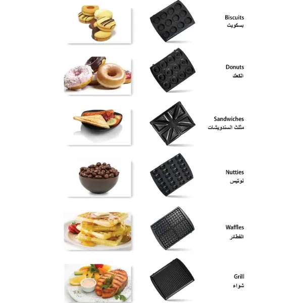 تمكنك من إعداد السندويشات الشهية، شواء اللحم، تحضير بسكويت الوفل المحبب للجميع، إعداد الكوكيز، الدوناتس ومختلف الوجبات الخفيفة بشكل سريع وسهل للغاية
