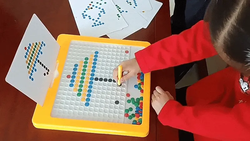 ❤️ من خلال تحريك هذه الخرزات المغناطيسية الملونة على لوحة رسومات الشعار المبتكرة، سيستمتع الطفل بنشر خياله وإنشاء أنماط فريدة خاصة به.