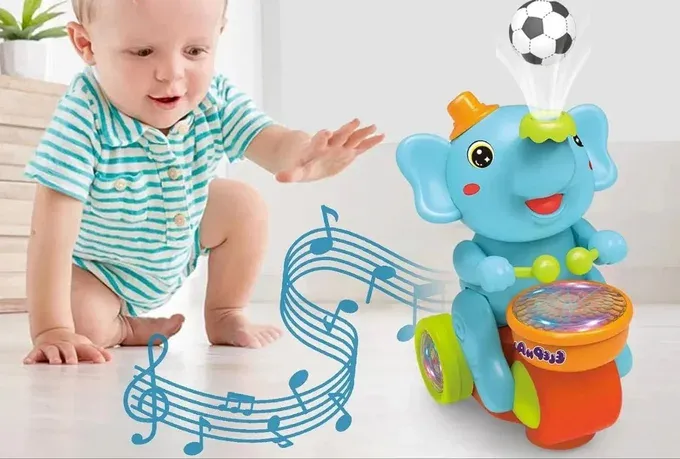 شكل الفيل الظريف وألحانه المرحة يخطف انتباه الطفل من أول لحظة، ويحوّل اللعب إلى ضحك، تفاعل، وطاقة إيجابية 💛